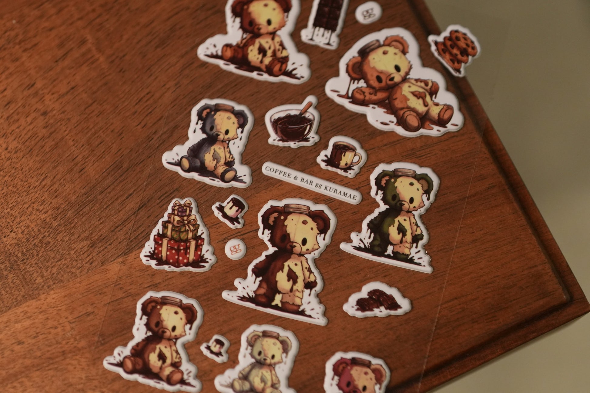 チョコレートにまみれたggのクマたちを描いた、